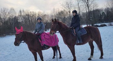 Cześć! W Okrzeszynie zima potrafi być naprawdę piękna, zwłaszcza podczas spacerów konnych!